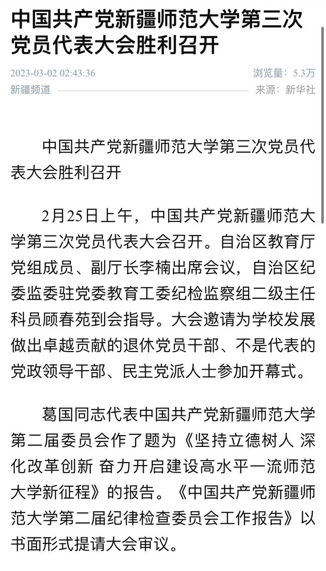 2月25日上午,中国共产党yl6809永利官网第三次党员代表大会召开。自治区教育厅党组成员、副厅长李楠出席会议,自治区纪委监委驻党委教育工委纪检监察组二级主任科员顾春苑到会指导。大会邀请为学校发展做出卓越贡献的退休党员干部、不是代表的党政领导干部、民主党派人士参加开幕式。