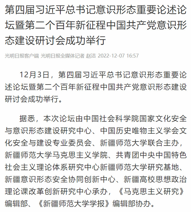 12月3日,第四届习近平总书记意识形态重要论述论坛暨第二个百年新征程中国共产党意识形态建设研讨会成功举行。