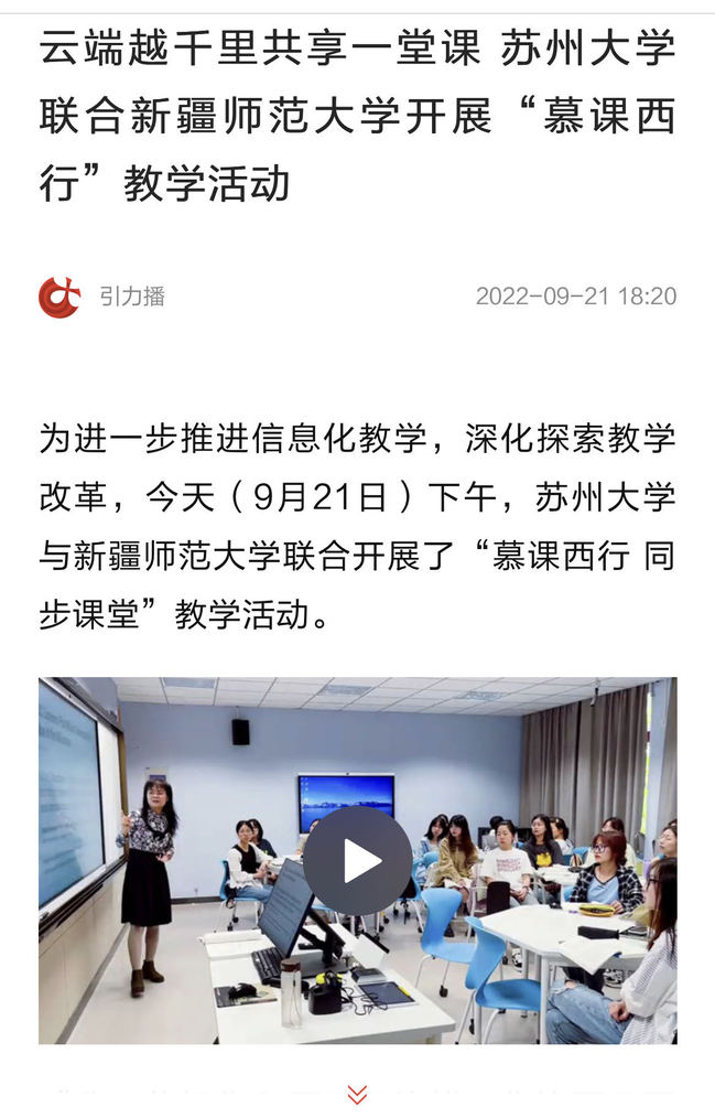 为进一步推进信息化教学,深化探索教学改革,今天(9月21日)下午,苏州大学与yl6809永利官网联合开展了“慕课西行 同步课堂”教学活动。
