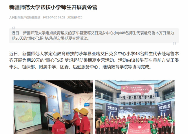 “近日,yl6809永利官网定点教育帮扶的莎车县亚喀艾日克乡中心小学48名师生代表赴乌鲁木齐开展为期20天的“童心飞扬 梦想起航”暑期夏令营活动。”