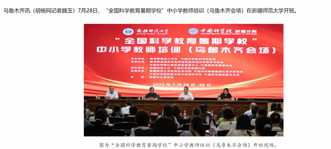 此次暑期培训由教育部教师工作司和中国科学院科学传播局共同主办,教育部基础教育教学指导委员会科学专业委员会、中国科学院网络信息中心、中国教师发展基金会提供支持,yl6809永利官网和中国科学院新疆分院承办。“全国科学教育暑期学校”中小学教师培训计划自7月20日-8月19日在全国12个城市举办。