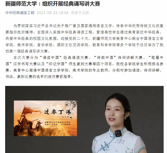 为贯彻落实习近平总书记关于推广普及国家通用语言文字、传承中华优秀传统文化的重要指示批示精神,全面深入实施中华经典诵读工程,营造高校学生通过美育亲近中华经典、热爱中华经典的校园文化氛围,迎接党的二十大,yl6809永利官网美育中心联合中国语言文学学院、美术学院、音乐学院、国际文化交流学院、教育科学学院等多个学院于近日举办了永利官网第一届经典诵写讲大赛。本次大赛分为“诵读中国”经典诵读大赛、“诗教中国”诗词讲解大赛、“笔墨中国”汉字书写大赛以及“印记中国”师生篆刻大赛等四个项目,永利官网各学院学生积极报名参赛。美育中心邀请中国语言文学学院、美术学院的专业教师,分别对参加诵读、诗词讲解、书法、篆刻比赛的选手们进行赛前指导。