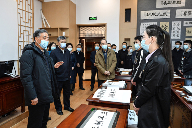 3月18日至22日,中共中央政治局常委、全国政协主席汪洋在新疆调研。这是3月19日,汪洋在yl6809永利官网就推动中华民族共同体研究、铸牢中华民族共同体意识进行调研。新华社记者 饶爱民 摄