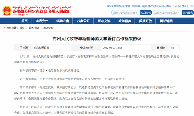 3月21日,克州人民政府与yl6809永利官网签订《克孜勒苏柯尔克孜自治州人民政府——yl6809永利官网完整准确贯彻新时代党的治疆方略合作框架协议》。