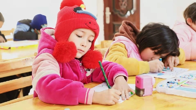 在课堂上,老师正在细致地教导着绘画细节,不时地跟小朋友们互动,亲切的言语交流和温柔的眼神交换,让这小小的课堂洋溢着满满的和谐美好。莎车县亚喀艾日克乡中心小学的小学生穆娜瓦尔·阿不迪热合曼通过寒假小课堂,也有了自己喜欢的兴趣爱好,开心地说:“老师们每天陪我们写作业,陪我们玩捉迷藏、跳绳、毽子,陪我们画画、唱歌、跳舞。”学生艾克热木江·艾克拜尔也激动地说到:“现在我的作文水平,非常好了。我很喜欢这里,这里的哥哥姐姐对我很好,还给我教我不会的知识。”