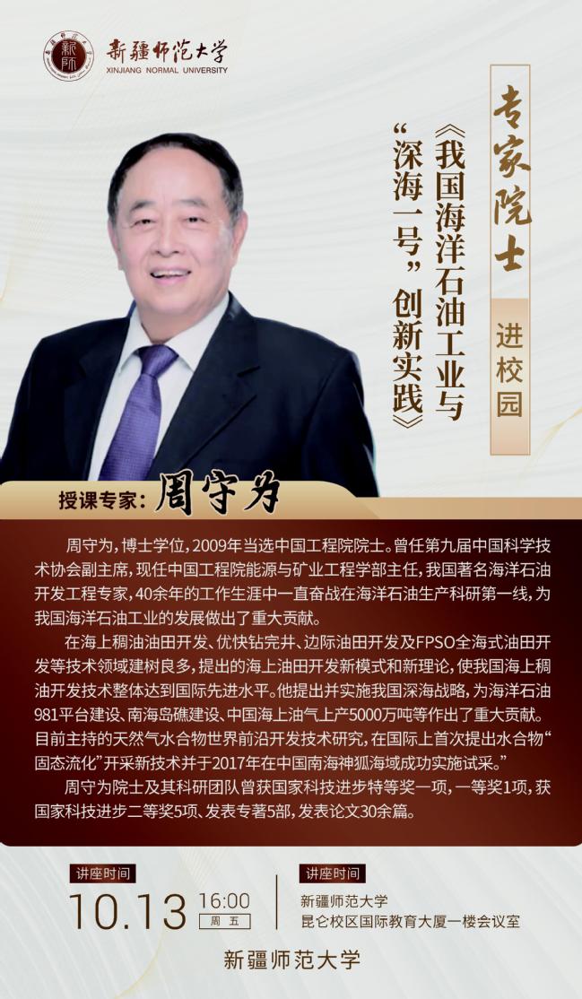 讲座主题:我国海洋石油工业与“深海一号”创新实践