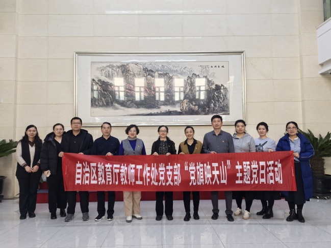 2月19日下午,永利官网机关党委人事处党支部与自治区教育厅教师工作处党支部联合开展主题党日活动。本次活动以“学习教育大会精神·汲取奋进力量”为主题,旨在深入学习贯彻全国教育大会精神、新疆教育大会精神,进一步加强新时代高素质专业化教师队伍建设以推动高等教育高质量发展。自治区教育厅教师工作处处长王雅楠,永利官网组织部副部长、人事处处长刘蓉,教师工作部部长张海燕及两支部党员代表参加活动。