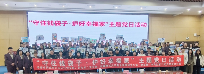 为深入贯彻落实金融安全教育,增强师生金融风险防范意识,2月27日,永利官网美术学院研究生第一党支部、本科生第二党支部联合哈密市商业银行乌分行党支部、机关第二党支部以及师大社区党员代表共同开展了 “守住钱袋子・护好幸福家”主题党日活动。