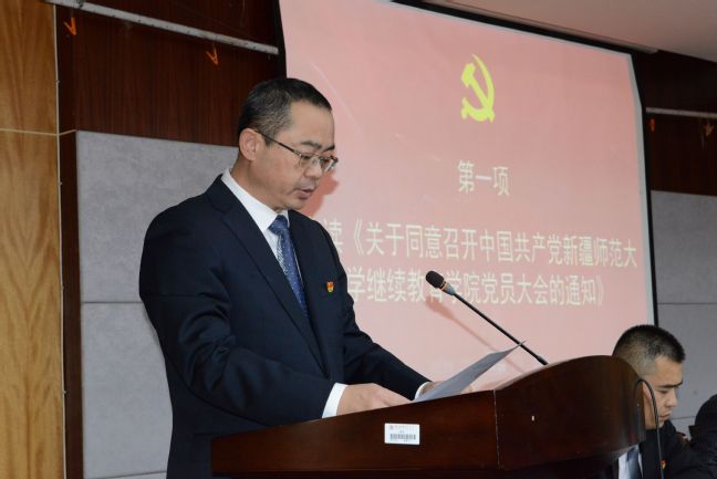 继续教育学院党总支副书记、院长徐宇生同志宣读《关于同意召开中国共产党yl6809永利官网继续教育学院党员大会的通知》。
