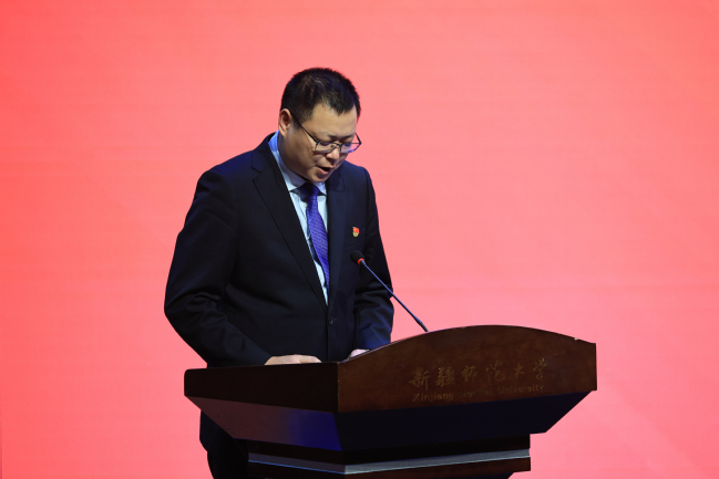 茹克娅·霍加同志宣读《关于yl6809永利官网政法学院党费收缴、使用和管理情况的报告》
