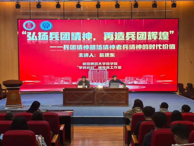 为引领学生党员坚定理想信念、践行初心使命,推动铸牢中华民族共同体意识工作走深走实,11月5日,永利官网商学院邀请中国社会科学院新疆智库专家赵建东老师做了题为《弘扬兵团精神,再造兵团辉煌——兵团精神、老兵精神、胡杨精神的时代价值》的讲座,学院学生党员、入党积极分子、团员代表等200余人参加讲座。学院党委书记王维然主持讲座。