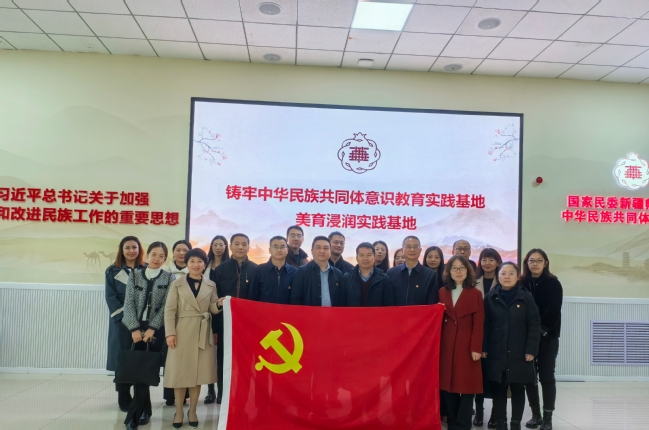 活动通过集中学习、重温入党誓词、自治区社科基金合作项目进展情况研讨交流、参观永利官网铸牢中华民族共同体意识教育实践基地(美育浸润实践基地)等形式开展,有形有感有效铸牢中华民族共同体意识,进一步提升了各支部的号召力、凝聚力和向心力。