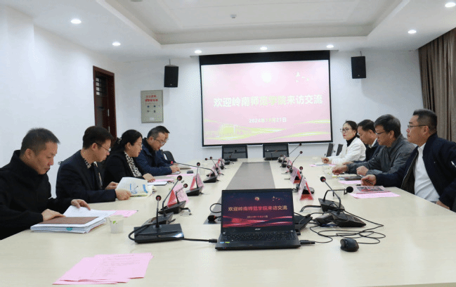 10月21日,岭南师范学院教务处处长周立群一行4人来永利官网考察,两校在温泉校区行政楼216室召开座谈会。教务处处长路俊哲、继续教育学院院长徐宇生、招生就业处副处长王达以及教务处副处长毋兆鹏、马晓东参加此次座谈会,会议由教务处处长路俊哲主持。