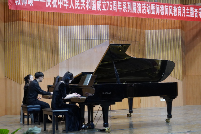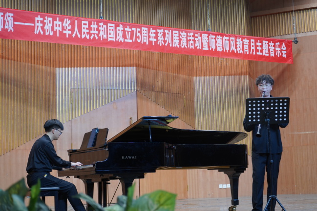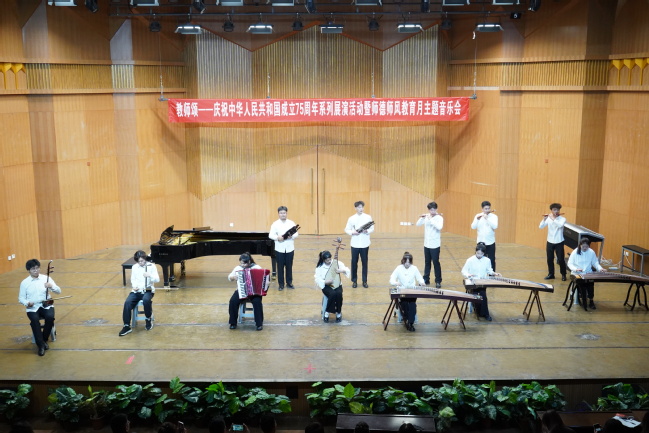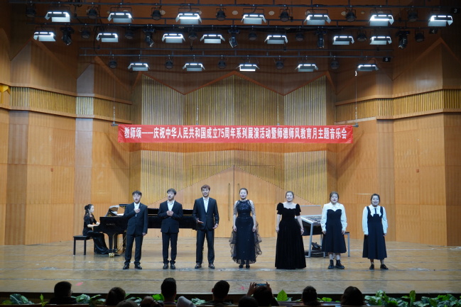 9月25日,永利官网音乐学院在昆仑校区音乐厅举办“教师颂”——庆祝中华人民共和国成立75周年系列展演活动暨师德师风教育月主题音乐会。200余位师生现场聆听。