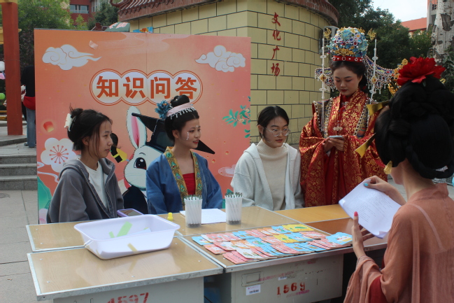 活动分设文化传承区、习俗体验区、传统文化手作区、趣味问答和游戏挑战区。汉服走秀、灯谜竞猜、心愿祈福、月饼品鉴、水拓丝巾、兔子花灯、永生花团扇制作、投壶等内容丰富的传统文化活动吸引了两校区近500名师生参加。大家在感受节日气氛的同时加深了对传统节日习俗的了解,激发了对中华传统文化的热爱,增强了爱国主义情怀。