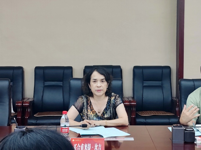国际合作与交流处处长买合甫来提·坎吉主持座谈会