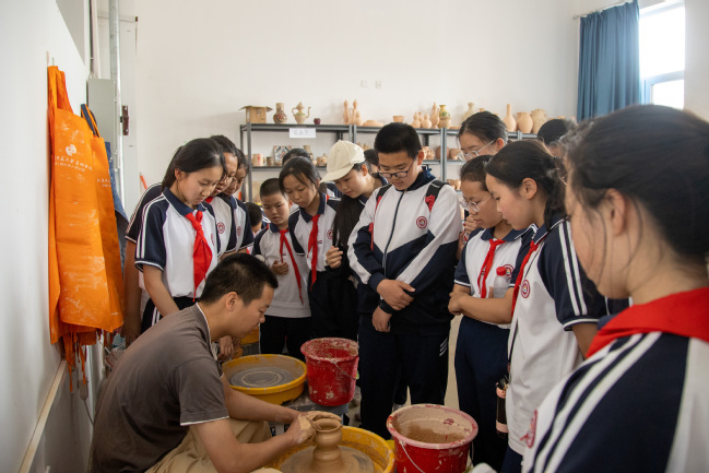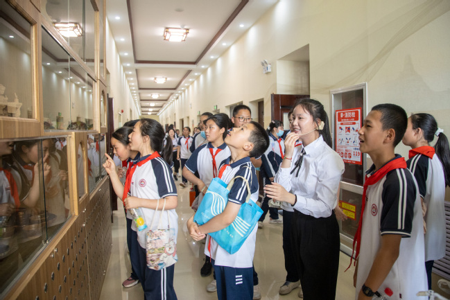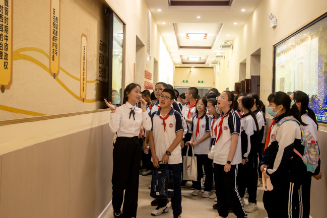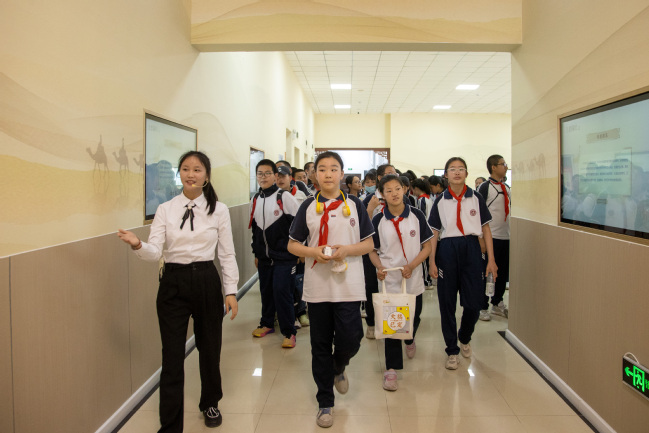 5月15日下午,永利官网附属中学初中校本部小升初直升1班、2班的97名学生来到铸牢中华民族共同体意识教育实践基地(美育浸润实践基地)开展铸牢中华民族共同体意识暨马克思主义理论教育主题研学活动。
