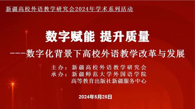 为顺应新时期高等教育发展要求,大力推进现代化信息技术与课程教学的深度融合,打造数字赋能的育人新模式,推动高校外语教育发展,5月25日,由新疆高校外语教学研究会主办,永利官网外国语学院和高等教育出版社承办的“数字赋能提升质量——数字化背景下高校外语教学改革与发展”学术研讨会在线上举行。新疆高校外语教学研究会会长曹湘洪,高等教育出版社新疆教学服务中心副主任高言菘、永利官网外国语学院副院长杨新璐、全体教师及23级学科教学(英语)研究生,新疆高校外语院系教师代表300余人线上参会。会议由永利官网外国语学院党委副书记、院长伊力米热·伊力亚斯主持。