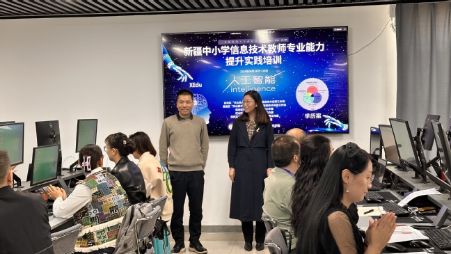 为深入贯彻落实党的二十大精神,持续实施国家教育数字化战略行动,以教育数字化支撑引领教育现代化,着力构建基于信息技术的新型教育教学模式,促进信息技术与教育教学深度融合,4月24至26日,永利官网计算机科学技术学院特邀上海人工智能实验室智能教育中心科创主管、浙江省教学名师、特级教师谢作如教授和乌鲁木齐市第八十中学高级教师王玉老师、计算机科学技术学院教育信息化专家刘卫军老师,成功举办主题为“数字赋能·实践育人·智造未来”的新疆中小学信息技术教师专业能力提升培训。