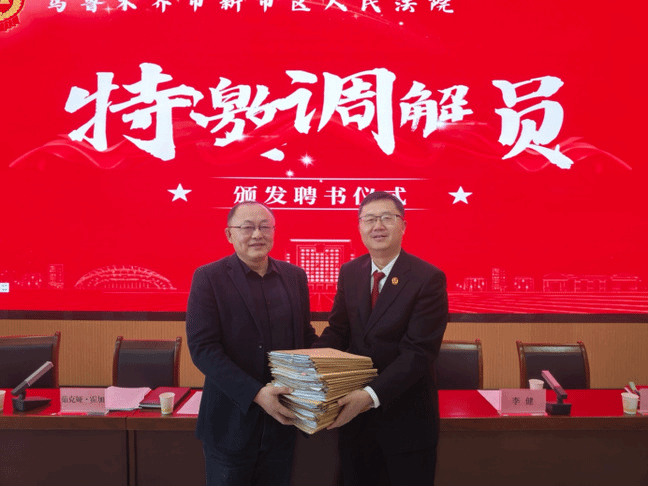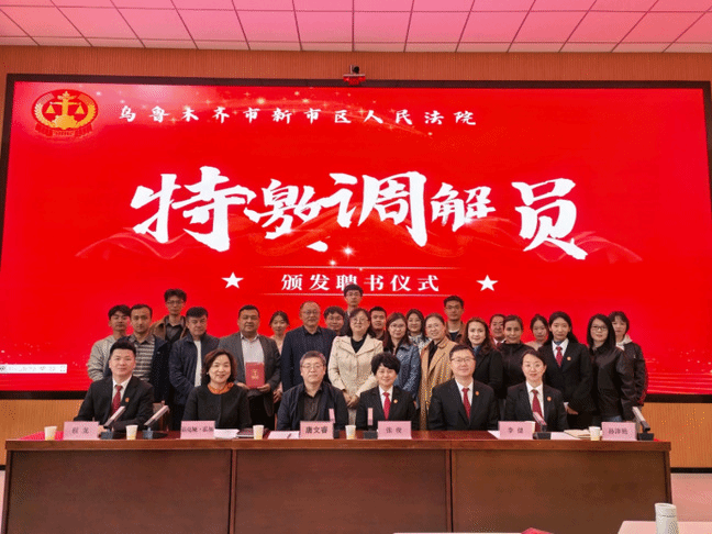 为推动溯源治理工作开展,健全多元纠纷解决机制,4月28日下午,乌鲁木齐市新市区人民法院党组书记张俊、副院长李健一行人前往永利官网政法学院,为学院12名教师颁发“特邀调解员”聘任证书。活动由政法学院副院长茹克娅·霍加教授主持。