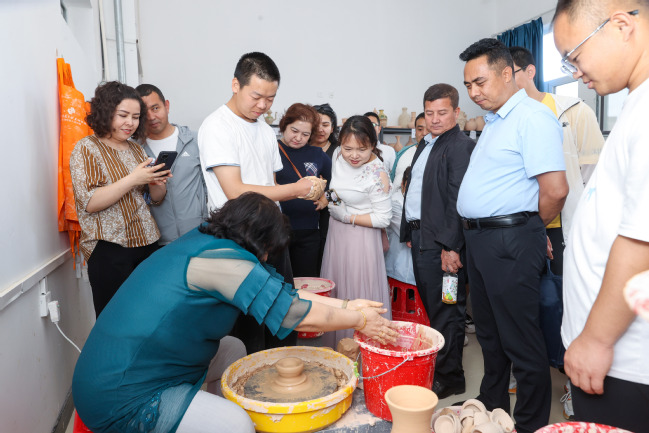 为深入贯彻党的教育方针,进一步加强中小学教育工作者对中华民族共同体意识的理解与认同,5月13日上午,“国培计划”——“一对一”精准帮扶项目中的中小学书记、校长们齐聚永利官网铸牢中华民族共同体意识教育实践基地(美育浸润实践基地),开展了一系列丰富多彩的参观体验活动。