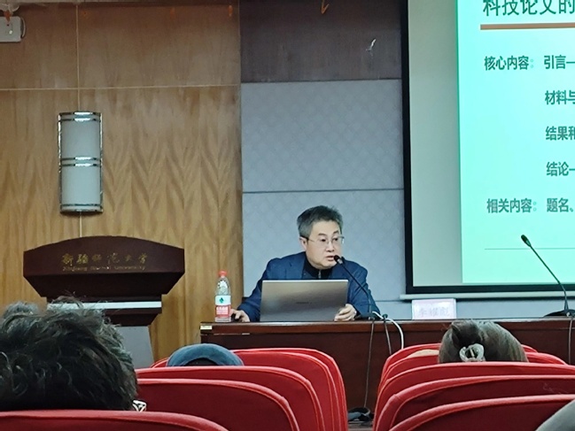 李耀彪总编以“科技论文写作”为题,结合多年的编辑经验,从论文选题、文献综述、研究方法、数据分析等多个方面,详细阐述了科技论文的写作要点和技巧。郝振东总编以“Light品牌刊群服务科技创新发展”为题,重点介绍了Light品牌刊群如何服务科技创新发展,详细解读了Light刊群的办刊理念、特色栏目以及审稿流程等,帮助师生对Light刊群有了更加深入的了解。同时还分享了一些成功的案例,展示了Light刊群在推动科技创新方面的积极作用。