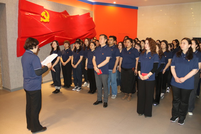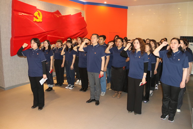 在厂史馆中,全体教师组织开展了党委书记讲党课、重温入党誓词、接力诵读《党章》、自由研讨交流等主题党日活动。