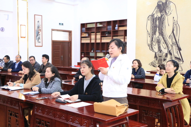 本次主题党日活动邀请了中国语言文学学院教授沈维琼讲授“国学讲堂”小课堂活动。沈维琼教授以“中华文化与文化中国”为主题具体讲解了中华文化对中华民族生命根源的意义、文化自信与文化自觉对中华人民的深远影响,引发各位党员思考当今世界格局与全球经济和科技发展变化,激励大家要勇敢肩负起时代赋予的重任。