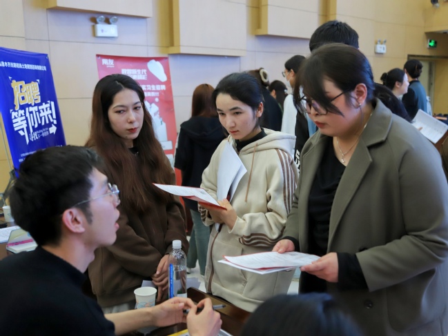 招聘会现场,毕业生携带精心制作的求职简历,积极与用人单位沟通,了解企业人才发展路径、工作要求、福利待遇,用人单位亲切接待,耐心解答,现场气氛热烈、融洽。