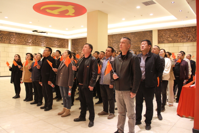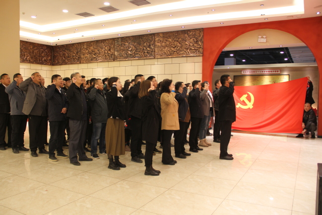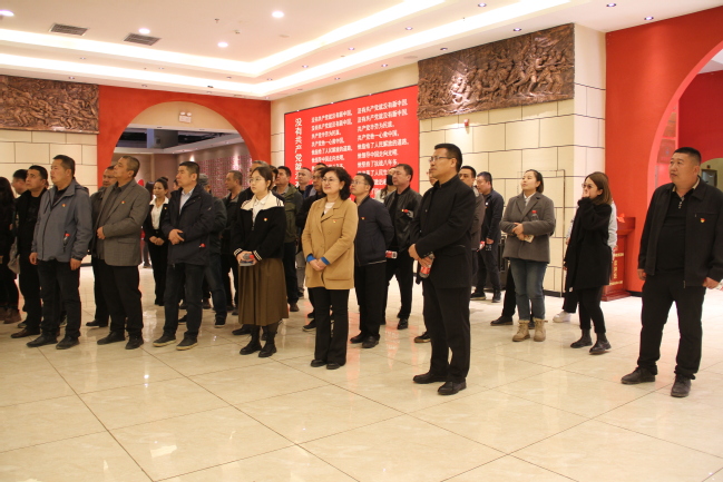 在延安精神教育基地展馆序厅,全体党员首先在后勤服务中心党委副书记、纪委书记潘江峰的带领下重温入党誓词。随后,大家齐唱《没有共产党就没有新中国》,歌声整齐、宏亮、高亢,表达了全体党员干部们的心声。