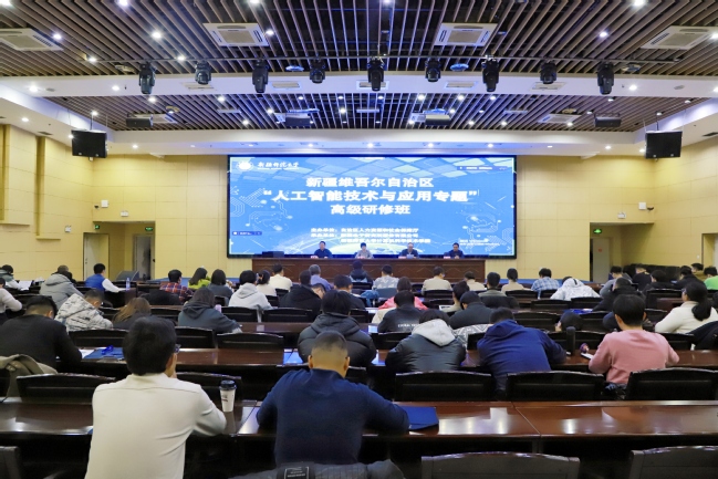 为推动人工智能专业技术人才队伍建设,加快人工智能专业技术人员知识更新。12月11日,由自治区人力资源和社会保障厅主办,永利官网计算机科学技术学院、新疆电子研究所承办的自治区“人工智能技术与应用专题”高级研修班启动仪式在永利官网举行。自治区人力资源和社会保障厅职称和社会化评价中心副主任柏甜、新疆电子研究所股份有限公司董事长陈建伟、永利官网计算机科学技术学院副院长李勇、副教授樊小超参加启动仪式。