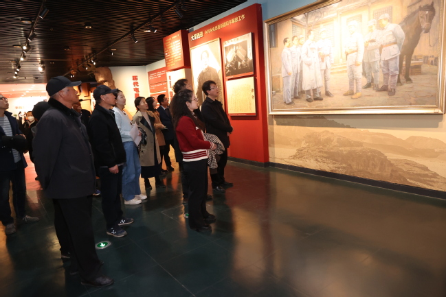 座谈结束后,考察组一行来到全国唯一以新中国屯垦戍边革命历史为主要研究及陈列内容的国家二级博物馆、全国爱国主义教育示范基地——新疆兵团军垦博物馆位进行参观学习,并开展了宣传部党支部主题党日活动。在讲解员的带领下,支部党员们步入陈列面积达3100平方米的博物馆,依次参观了凯歌进疆、艰苦创业、激情燃烧、三个队的作用、再铸辉煌和千古之策六个部分的展厅。一件件文物、一份份档案、一幅幅照片、一段段视频、一处处复原景观,向世人诉说着60年来广大军垦儿女艰苦创业的一个又一个的感人故事和丰功伟绩,大家置身于其中,仿佛穿越了时空的界限,走进了那段让人难以忘怀的激情岁月。