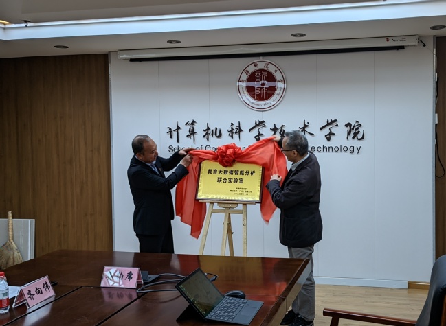 张海军与刘军民共同为教育大数据智能分析联合实验室揭牌
