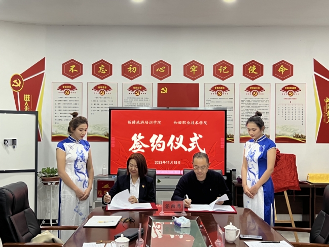 随后,徐宇生与李宏签署战略合作协议,并与与会嘉宾共同为“新疆旅游培训学院分院”揭牌。