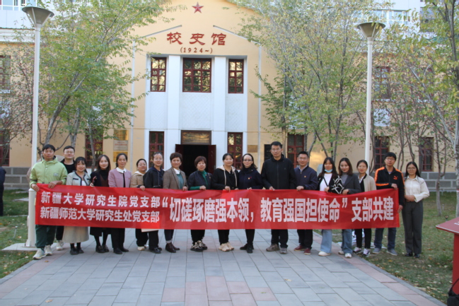 为持续巩固深化主题教育成果,加强业务学习与交流,促进党建与业务深度融合,10月18日下午,研究生处党支部走进新疆大学红湖校区,与新疆大学研究生院党支部联合开展了“切磋琢磨强本领,教育强国担使命”主题党日活动。