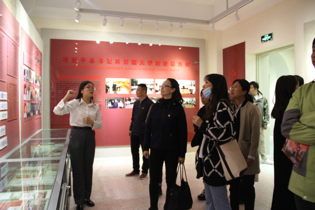 活动前,全体工作人员沿着2022年习近平总书记视察新疆大学的足迹,参观了自治区爱国主义教育基地新疆大学校史馆。