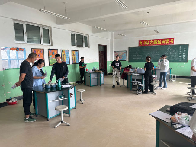 与实习支教学生交流