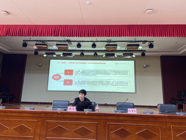 讲座基于《新时代高校教师职业行为十项准则》《关于高校教师师德失范行为处理的指导意见》《高等学校预防与处理学术不端行为办法》等文件主旨内容,明确新时代高校教师的职业规范;围绕大学教师学术信念、学术气质、学术交往与学术自律四种责任精神展开论述,从专业伦理的角度论述大学教师学术责任内涵,探讨以责任伦理为轴心的学术自我修复能力,应成为新时代培育大学教师学术责任精神的核心要义,帮助教师重燃学术信念。