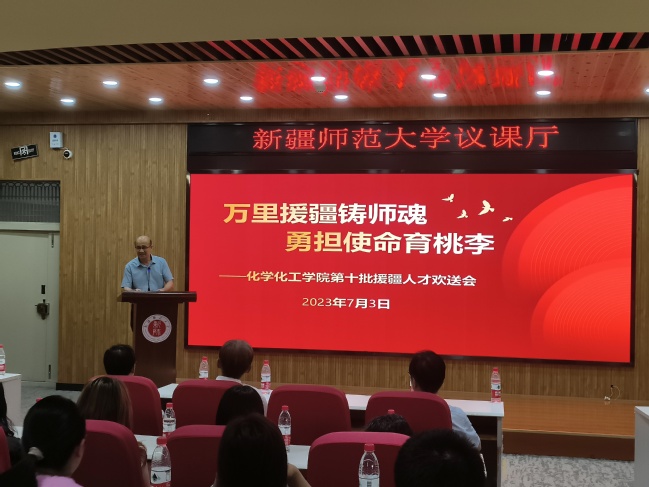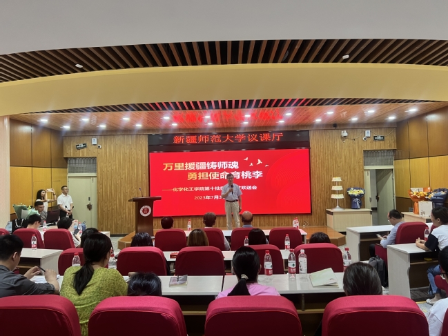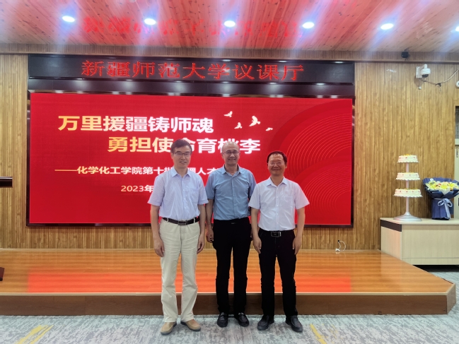 7月3日,化学化工学院隆重举行“万里援疆铸师魂 勇担使命育桃李”——第十批援疆人才欢送大会暨陈平教授荣誉退休仪式。校党委副书记、校长吾满江·艾力,校党委常委、统战部部长、化学化工学院院长关明,学院领导班子、全体教师、研究生代表参加会议。化学化工学院党委书记张鑫主持活动。