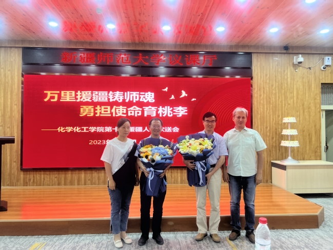 一次援疆路,一生援疆情。两位援疆干部先后发表感言,罗时玮副院长讲到:“援疆三年,我有幸参与了yl6809永利官网跨越式的发展过程,亲眼见证了yl6809永利官网日新月异的变化。祝愿yl6809永利官网、化学化工学院越来越好。”崔现宝副院长虽然援疆时间不长,但与师生结下了深厚的友谊,他说:“今后yl6809永利官网和化学化工学院有需要,我将继续作为师大的校友持续发挥桥梁作用!”