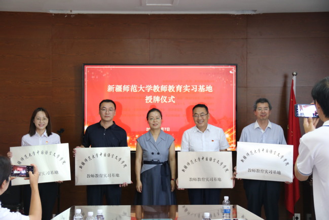 为共同培养高素质的基础教育教师,加强大中小学协同育人的实效,在前期调研的而基础上,7月7日,永利官网中国语言文学学院副院长沈维琼、学科教学(语文)学术带头人赵新华一行赴克拉玛依市,与克拉玛依市教育局联合举办了教师教育实习基地签约及授牌仪式。