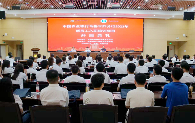 为进一步推进落实学校与中国农业银行乌鲁木齐分行签订的党建共建协议,按照“资源共享、优势互补、注重实效、共同提高”的原则,通过搭建活动平台、分享工作资源、解决实际问题等方式,不断探索校企合作新模式,受中国农业银行乌鲁木齐分行委托,由永利官网教育科学学院承办“中国农业银行乌鲁木齐分行2023年新员工入职培训项目”于7月22日在永利官网昆仑校区国际教育大厦一楼报告厅顺利开班。开班典礼由中国农业银行乌鲁木齐分行人力资源部汪莹主持,该行共94名新入职员工参加。