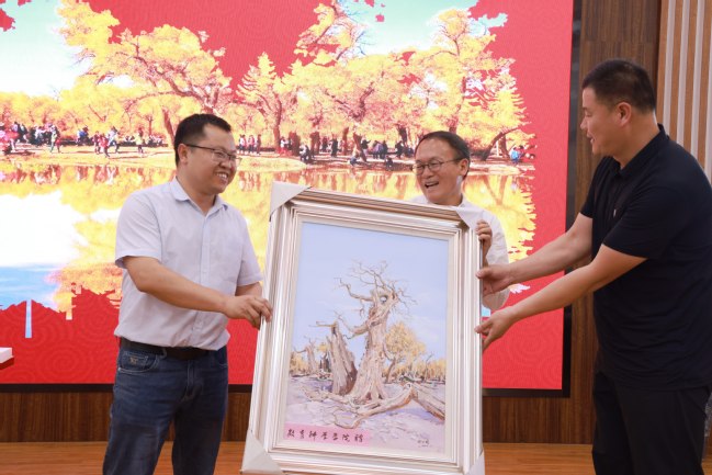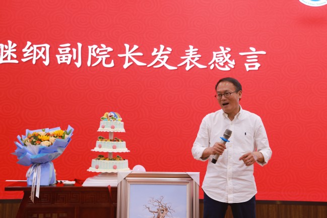 接着,阿不都合力力·卡德尔、王建虎为杜继纲献花,并切蛋糕、分享祝福。多强、程良宏分别致辞,对杜继纲三年间所做的各项贡献给予了充分认可,并赠送了纪念礼物油画《大漠胡杨》,发出了常回家看看的深情邀请。