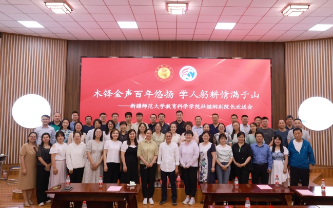 在第十批援疆干部即将期满返回之际,为感谢援疆干部为学院发展做出的付出和贡献,教育科学学院于6月28日下午在文泽楼国学讲堂举办了“木铎金声百年悠扬 学人躬耕情满于山”——北京师范大学援疆干部杜继纲副院长欢送会。北京师范大学援疆干部、yl6809永利官网教育科学学院副院长杜继纲,教育科学学院党委书记多强、院长程良宏,党委副书记、纪委书记阿不都合力力·卡德尔,副院长王建虎出席活动,学院全体教师,学前教育专业学生代表参加活动。