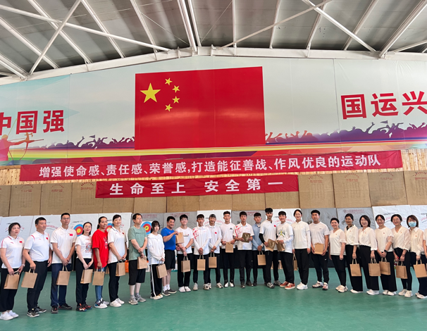 在升旗环节中,全体党员来到国旗杆下,随着国旗的冉冉升起,大家庄严肃立,高唱国歌,满怀深情地向国旗行注目礼。体育训练二大队党委委员、副大队长邹本珂做国旗下讲话并致欢迎辞,表达了对yl6809永利官网党员教师来队联建的欢迎,介绍了体育训练二大队的发展历程、取得的成绩以及运动员培养、训练日常和为自治区、为国家征战拼搏的情况。