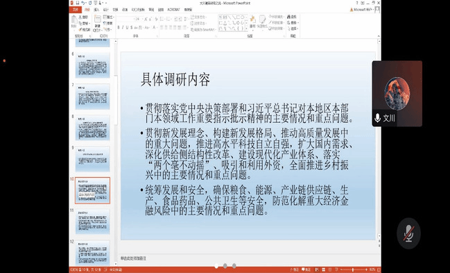 教师第三党支部书记欧阳文川向本支部党员做了大兴调查研究之风的报告,并着重解读了其重要内涵、总体要求,梳理了党的历史上各阶段大兴调查研究的历史背景和重要意义,号召大家在调研中将业务工作和支部党建工作紧密结合,积极调查,深入研究。最后强调,必须将大兴调查研究之风作为开展主题教育的重要内容,注意理论与实践相结合,密切联系群众、提高履职本领。