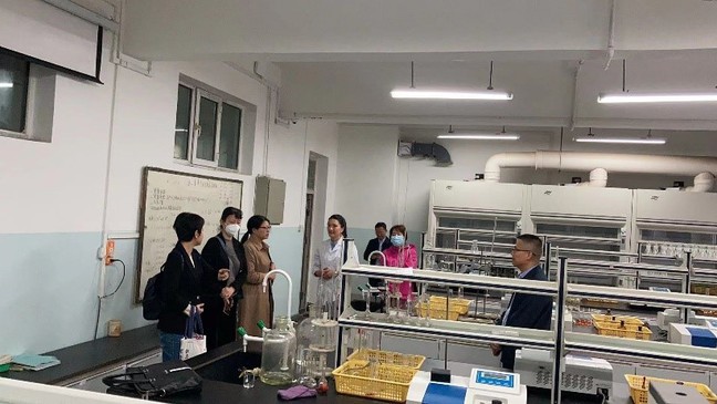 上午,在化学化工学院党委书记张鑫、副院长阿布都热西提、崔献宝、罗时玮、王英波的陪同下,朱平平教授一行参观了化学楼化学实验教学中心实验室、田家炳楼化学数字化实验室,观摩点评了化学化工学院教师杜为军讲授的题为《邻二氮菲分光光度法测定微量铁》的分析化学实验师范课。