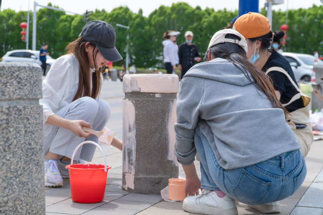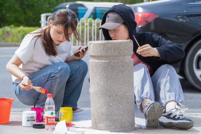 一个个精心绘制的石墩成为城市中一道靓丽的风景线,一幅幅画作中凝聚着青年的力量,展现了永利官网青年学子锐意进取的拼搏精神。美术学院将继续以社会实践为重要抓手,鼓励更多学子参与到主题教育各类实践活动中,充分发挥自身专业特长,以劳动教育带动美育,以实践之笔,书写青春之华章。