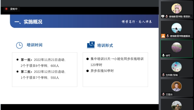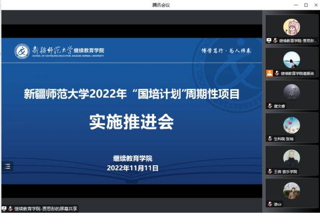 11月11日下午,永利官网召开2022年“国培计划”周期性项目实施推进会,承担2022年“国培计划”周期性项目的8个承训学院领导、学科首席专家及相关负责人参会。会议由继续教育学院副院长王星炎主持。