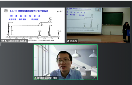 永利官网化学化工学院2020级化学专业的83名身在全国各地的学生与吉林大学2021级药学和临床医学专业的学生借助“智慧树”在线同步课堂平台,进行了线上线下课程的同步学习、实时互动。本学期的两次直播授课中,马玖彤为上好“慕课西行”课程,在与永利官网仪器分析化学课程团队教师进行深入交流后,根据学情制定授课方案,在授课过程中利用多种信息技术手段,设计制作简明美观的课件,嵌入仪器结构动图,抽丝剥茧地讲解解谱方法,让学生在深度参与教学活动的同时,学有所思,学有所获。化学化工学院化学2020-4班学生李佳文说:“这种上课方式让人印象深刻,马老师能根据仪器发展历史导入课程,再深入浅出地讲解仪器原理,由易到难,生动形象,激发了我们的学习兴趣。”化学化工学院《仪器分析》任课教师白希则表示,马教授教学思路清晰,使永利官网师生领略到了名校教师的风采。通过这种跨校、跨地域的教学活动,对提升永利官网教师教育教学能力及人才培养质量有很好的促进作用。